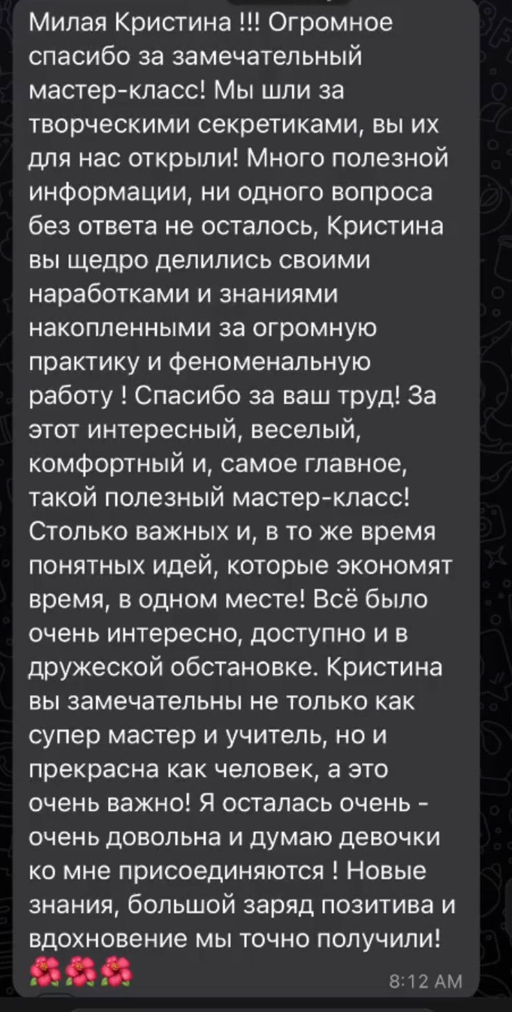 "Знания и практика, полученные на курсе, помогут вам разобраться в причинах и ошибках, встречающихся в работе мастера.Вы улучшите свои знания путём получения новой информации и интенсивной практики в современном моделировании. Умение грамотно моделировать ногти повысит ваш доход и востребованность. Увидимся на курсе! "